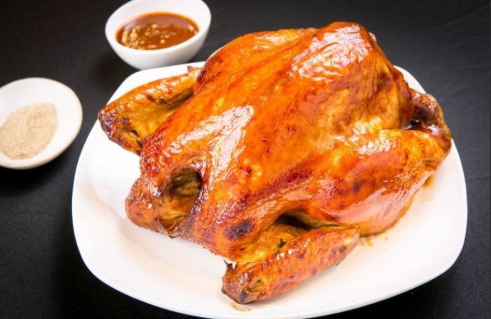 A: 雞腿肉多汁不易乾,但整隻雞烤才正宗(撕開時各部位混著吃)。