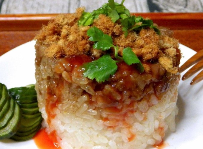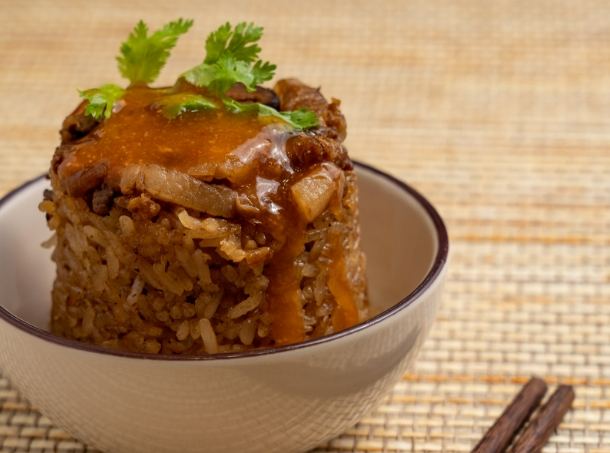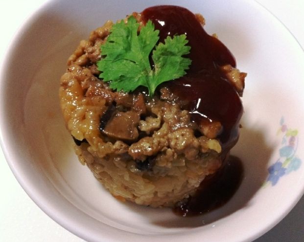 • 臺北、臺中一帶: 比較偏向我們前面做的這種。糯米拌炒香的肉燥蝦米香菇,蒸熟倒扣淋醬。醬汁通常是鹹甜醬油基底。米飯口感強調Q彈分明。